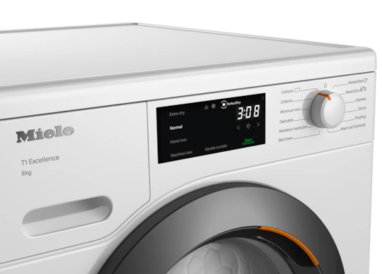 T1 heat-pump dryer: with A++ and Miele@home for intelligent laundry care.